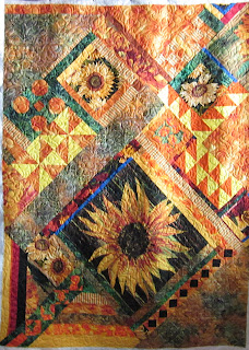 It seems like it took me a very long time for this one and when I checked the time on Mabel after I finished, I saw that it was 2 hours of stitching time. Doesn't seem like a lot, but his quilt is only 39 x 53. I loaded it on Friday and played around with threads to get just the right effect and tension. Took some time off yesterday to go visit my daughter and family, and we went to the Uptown Jazz and Blues Festival last night. After a glass of wine, I didn't think I better do any more until today. So, it's finished and I love it!